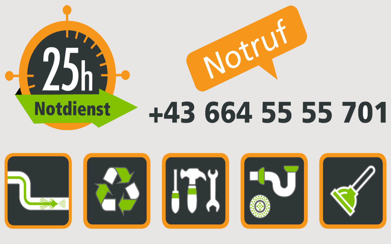 25h Notdienst bei Rohrverstopfung. Rufen Sie uns einfach an unter +43 664 55 55 701!